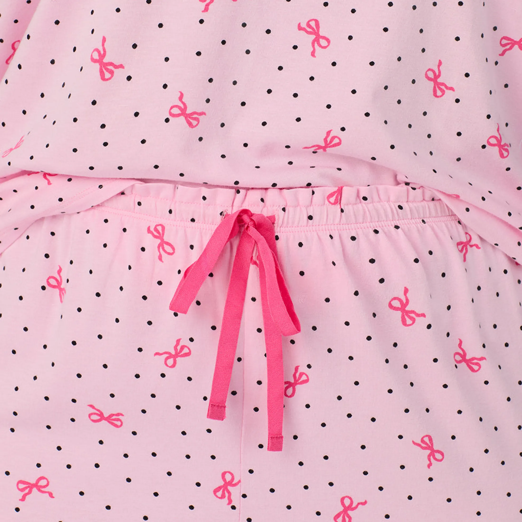 - Stylish ruffled trim at sleeves and at pant waist