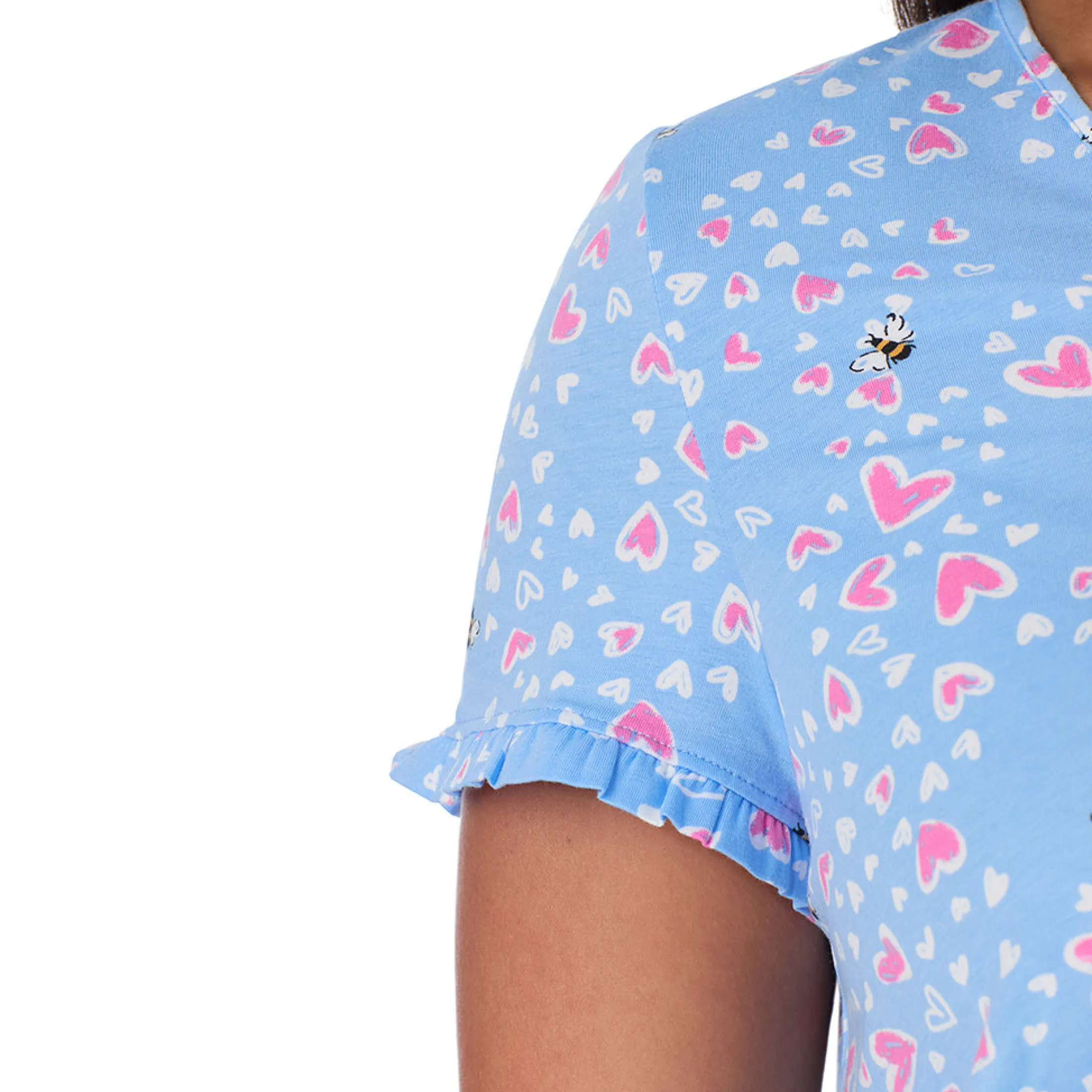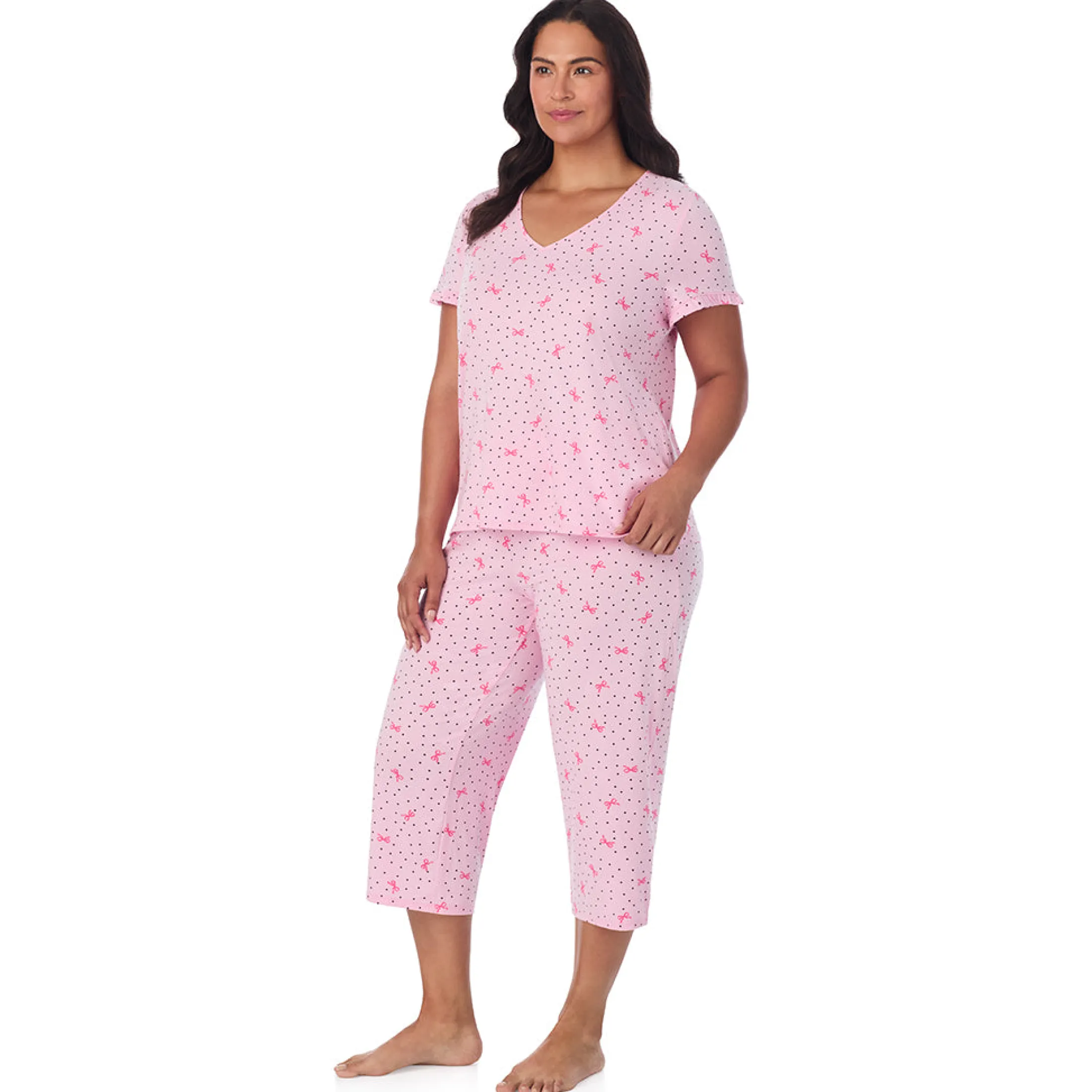 Our Cuddl Duds Cotton Rich Ruffled Short Sleeve Top with Pant Pajama Set was designed with the feeling of being on cloud nine in mind. The top has an easy pull-on style, ruffled-edge short sleeve and a v-neckline; Matching full open leg pant features a stylish ruffled trim at waist and a functional drawstring waistband for comfort. The lightweight material is a stretch cotton blend with a smooth hand and an ultra-soft feel that we love (and you will, too).