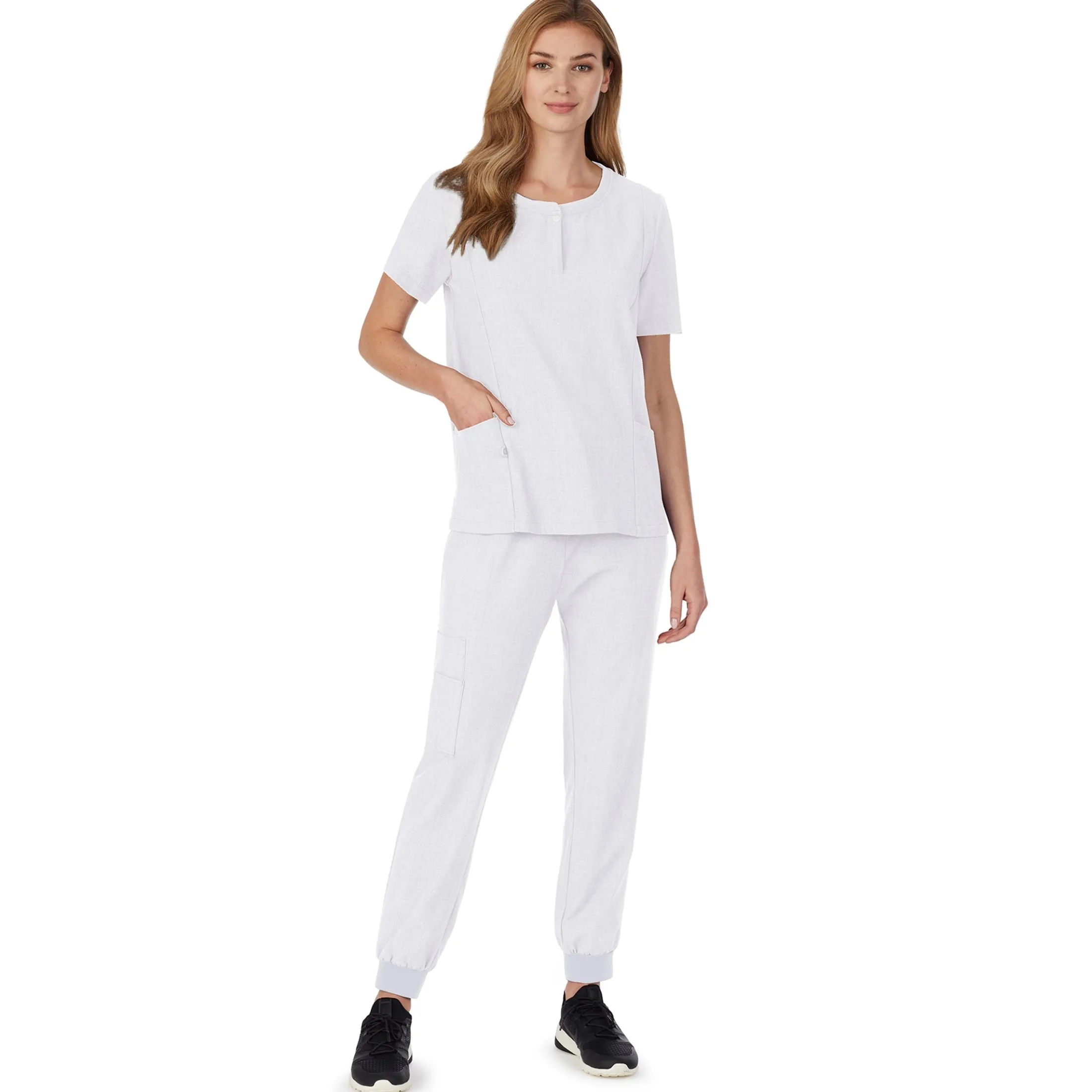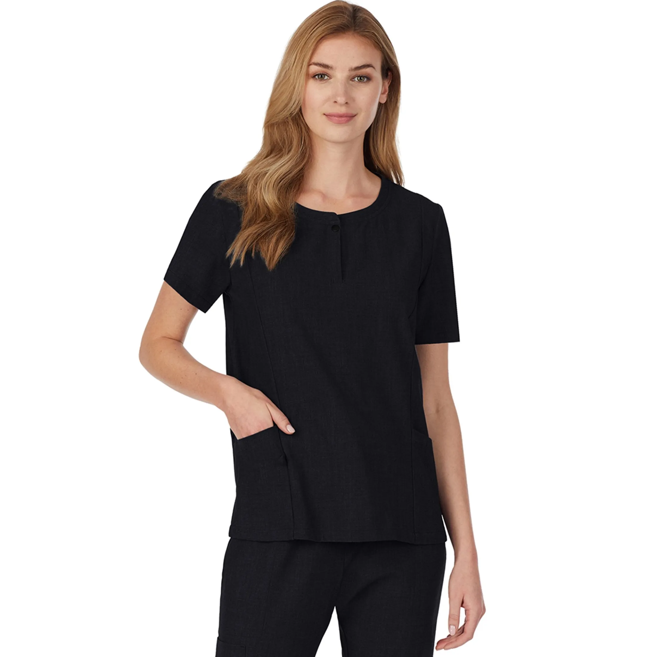 A function-meets-comfort take on the classic scrub top, our Henley Neck Top with Side Pockets has stretchy softness and handy functional details – like a loop for your badge. With Agion® antimicrobial technology to help combat odor-causing bacteria, keeping your garments fresher longer