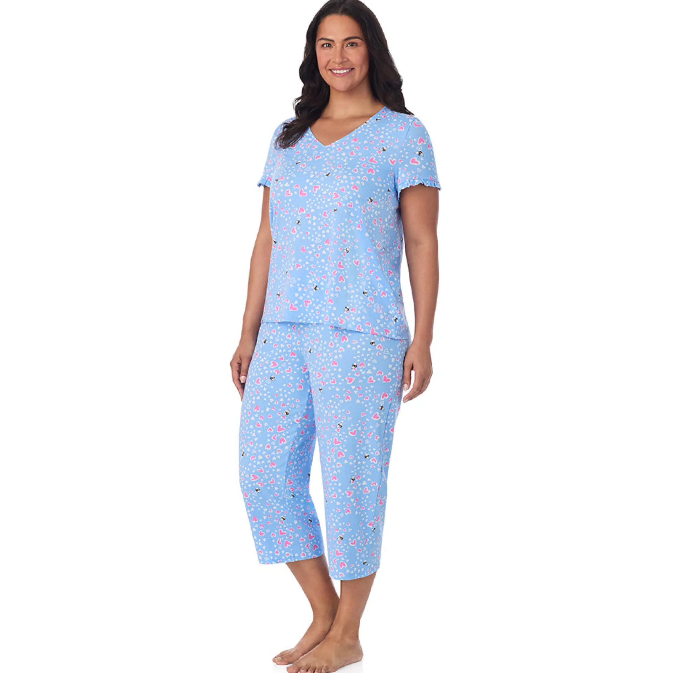 Our Cuddl Duds Cotton Rich Ruffled Short Sleeve Top with Pant Pajama Set was designed with the feeling of being on cloud nine in mind. The top has an easy pull-on style, ruffled-edge short sleeve and a v-neckline; Matching full open leg pant features a stylish ruffled trim at waist and a functional drawstring waistband for comfort. The lightweight material is a stretch cotton blend with a smooth hand and an ultra-soft feel that we love (and you will, too).